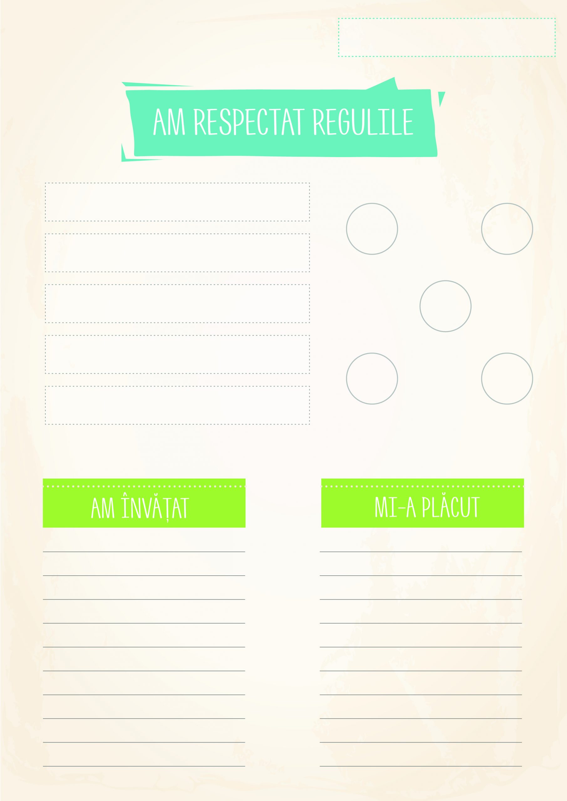 Fișele pot fi utilizate la finalul zilei sau la finalul săptămânii, în cadrul terapiei, acasă, la grădiniță sau la școală și ne permit identificarea unor noi obiective sau puncte de motivație.